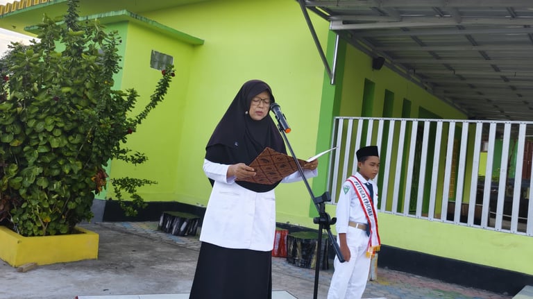 Pembina upacara memberikan amanat yang berisi pesan moral, motivasi belajar, penanaman nilai kebangsaan, serta penguatan akhlak Islami. Selain itu, upacara juga menjadi sarana penyampaian informasi penting terkait kedisiplinan, prestasi, dan program madrasah.